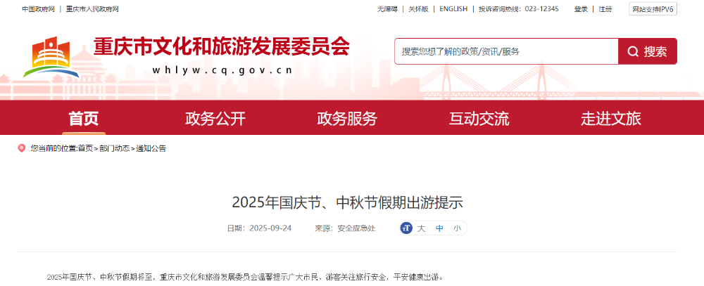 国庆日和中期节,重庆市政文化和旅游委员会问题提示→